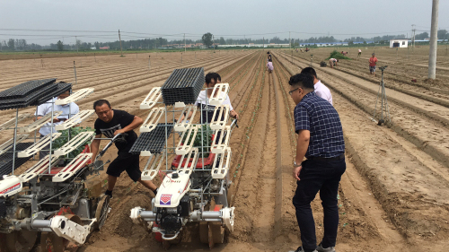 常州亞美柯機(jī)械設(shè)備有限公司自主研發(fā)的全自動(dòng)蔬菜缽苗移栽機(jī),于2018年8月17日在江蘇徐州豐縣實(shí)現(xiàn)西蘭花機(jī)械化種植規(guī)模化應(yīng)用,實(shí)現(xiàn)西蘭花丸?;シN,工廠化育苗和全自動(dòng)缽苗移栽,為我國(guó)蔬菜全程機(jī)械化種植提供了解決方案之一。